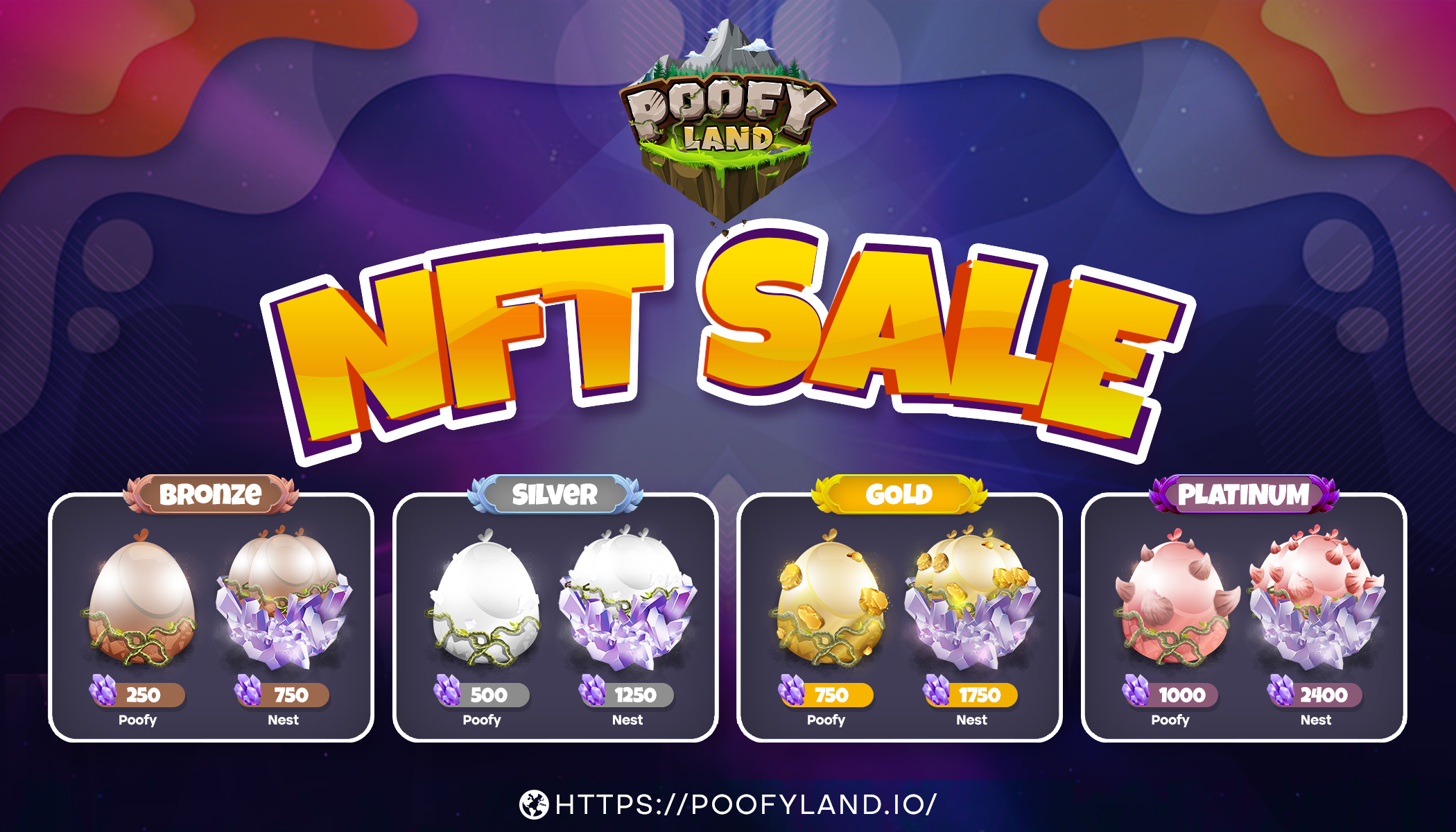 <figure><img src="https://4115860523-files.gitbook.io/~/files/v0/b/gitbook-x-prod.appspot.com/o/spaces%2FUXQgjRz6D1xTz8tjnoE4%2Fuploads%2Fdfkfw3cx0jxemBImLoq6%2FNFT%20Sale%20Egg%20%26%20Nests%20(2).jpg?alt=media&#x26;token=61cf6577-93cc-4942-8b77-099f83dfe4dd" alt=""><figcaption></figcaption></figure>